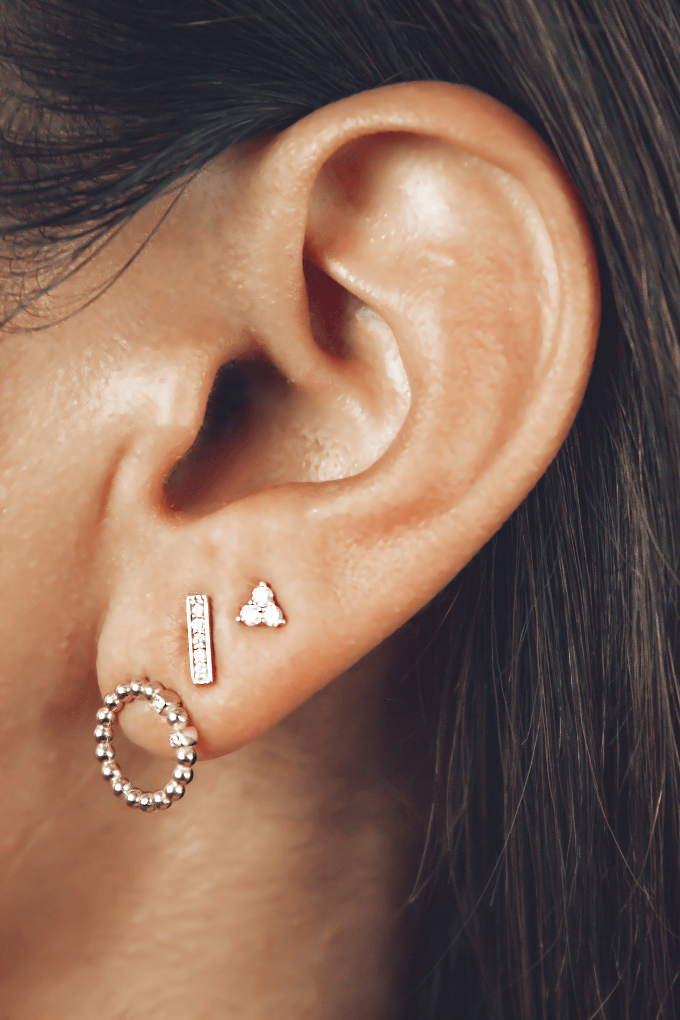 Triple white diamond stud - single piece - designed in Amsterdam - handcrafted in Istanbul